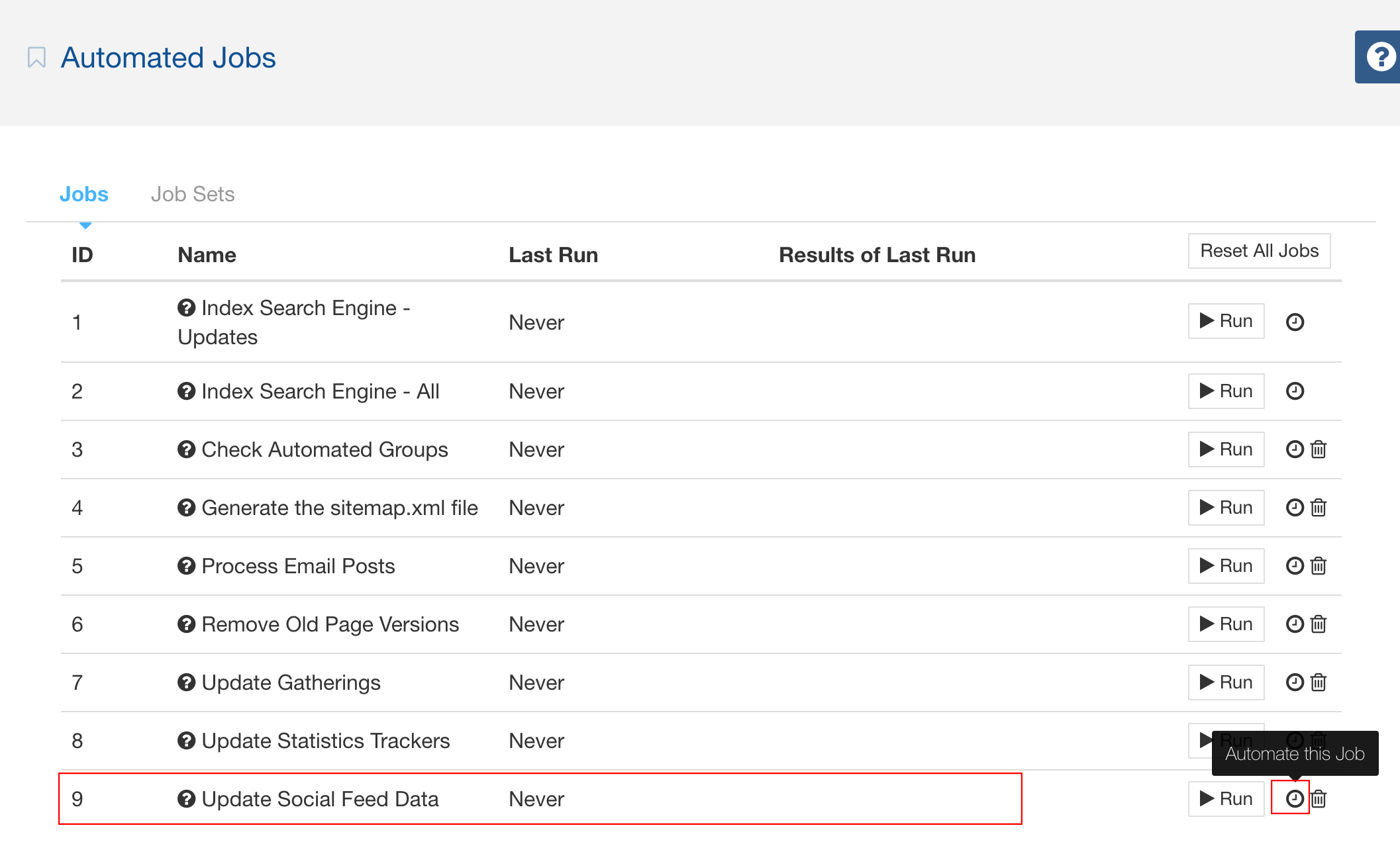 You will see a new job added and clicking on the "clock" icon, will open a modal with a few options.